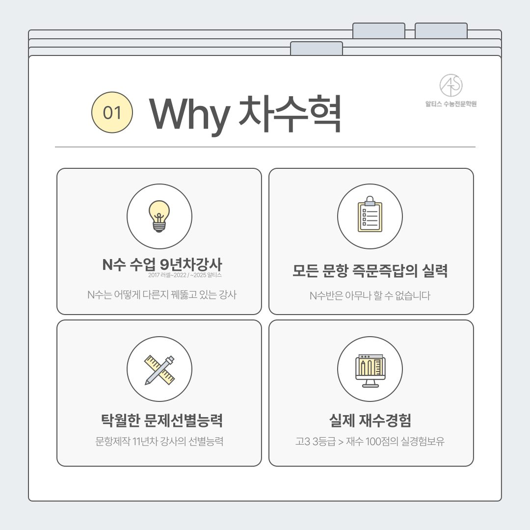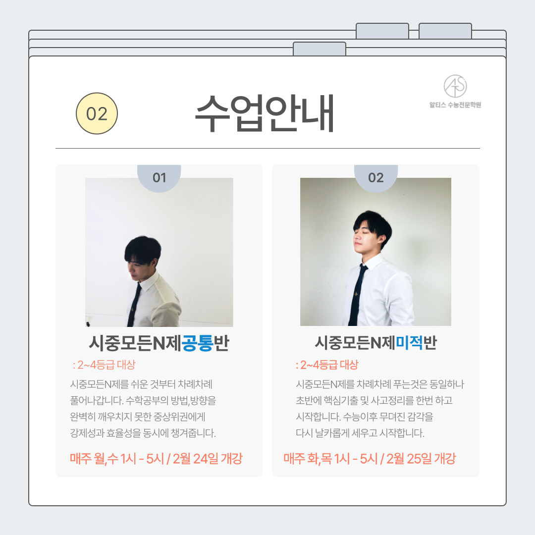 ***시중N제들은 N제라는 명목하에 이것저것 다양한 파트를 구석구석 다룹니다. 하지만 2-4등급 입장에선 구석구석 점검하고 있을 시간이 없습니다. 그리고 무엇이 구석인지 무엇이 핵심인지 문제를 다 풀기전까진 알 수 없습니다. 굵직한 성적향상을 이룰 수 있는 재수초반기를 삽질로 보내지않도록 합니다.